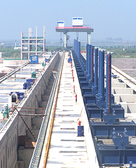 公司專業(yè)生產(chǎn)的各類平面、弧型閘門,各類卷揚(yáng)、門式、移動(dòng)式啟閉機(jī),各類清污機(jī)、攔污柵、升船機(jī)、壓力鋼管、錐形閥等超大型、大型水工金屬結(jié)構(gòu)件和各類起重機(jī)遠(yuǎn)銷全國26個(gè)省、市、自治區(qū),并出口到16個(gè)國家和地區(qū),廣泛應(yīng)用于全國重點(diǎn)工程建設(shè),如長江三峽永久性船閘工程、淮河蚌埠閘擴(kuò)建工程、浙江溫州珊溪水利樞紐工程、四川岷江紫坪鋪水利樞紐工程、浙江省分水江水利樞紐工程、中國河口第一大閘曹娥江攔河大閘和港口、船舶制造企業(yè)等。